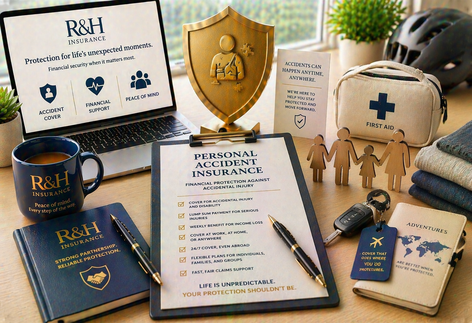 At R&H Haralambous Insurance, we offer Personal Accident Insurance designed to protect individuals, families, and groups against the financial consequences of unexpected accidents. Accidents can occur at work, at home, or anywhere else — even abroad — and may have a significant impact on health, income, and everyday life.