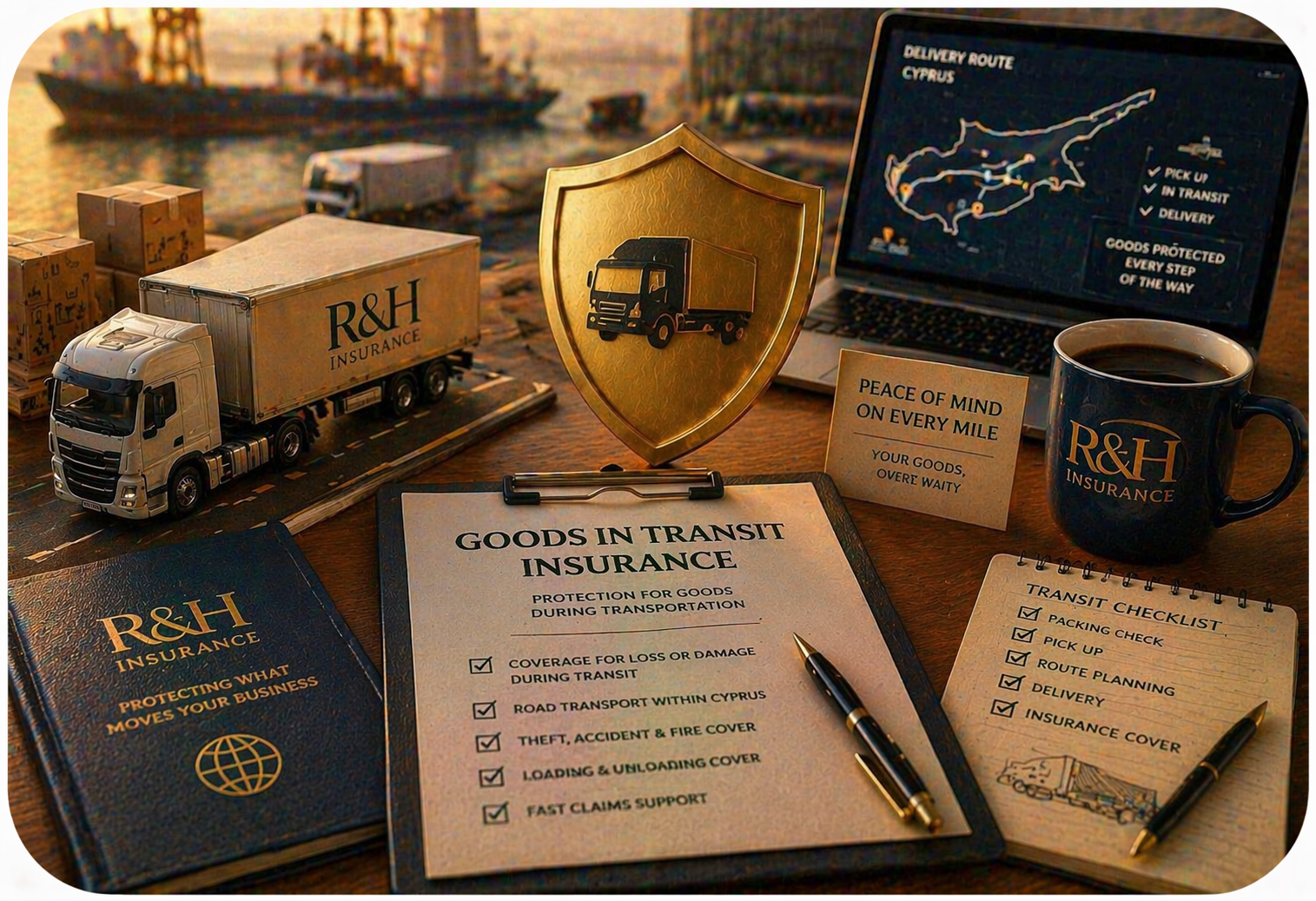 At R&H Haralambous Insurance, we offer Goods in Transit Insurance designed to protect businesses against financial loss or damage to goods during road transportation within Cyprus.